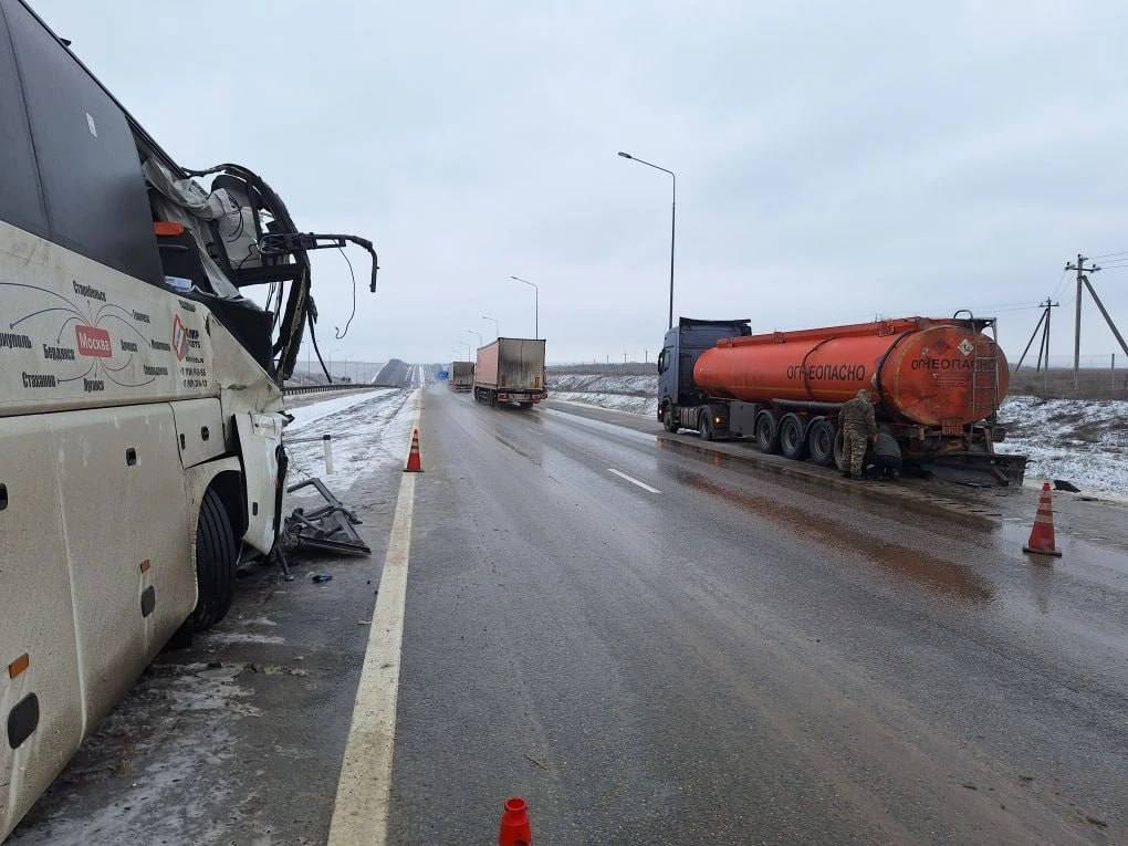 В Миллеровском районе на трассе М-4 «Дон» произошло ДТП с пассажирским автобусом и бензовозом. Пострадали 4 человека