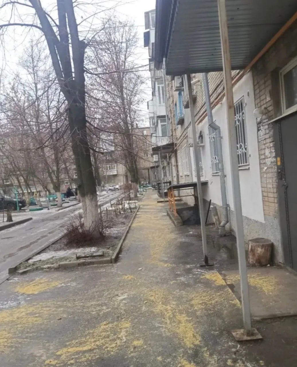 Поэтапно посыпаются подходы к подъездам, придомовые территории многоквартирных домов.