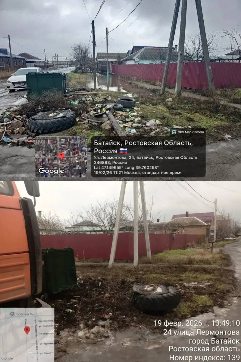 В администрацию города Батайска через «Платформу обратной связи» поступило сообщение о свалочном очаге по адресному ориентиру: ул. Лермонтова, 24.