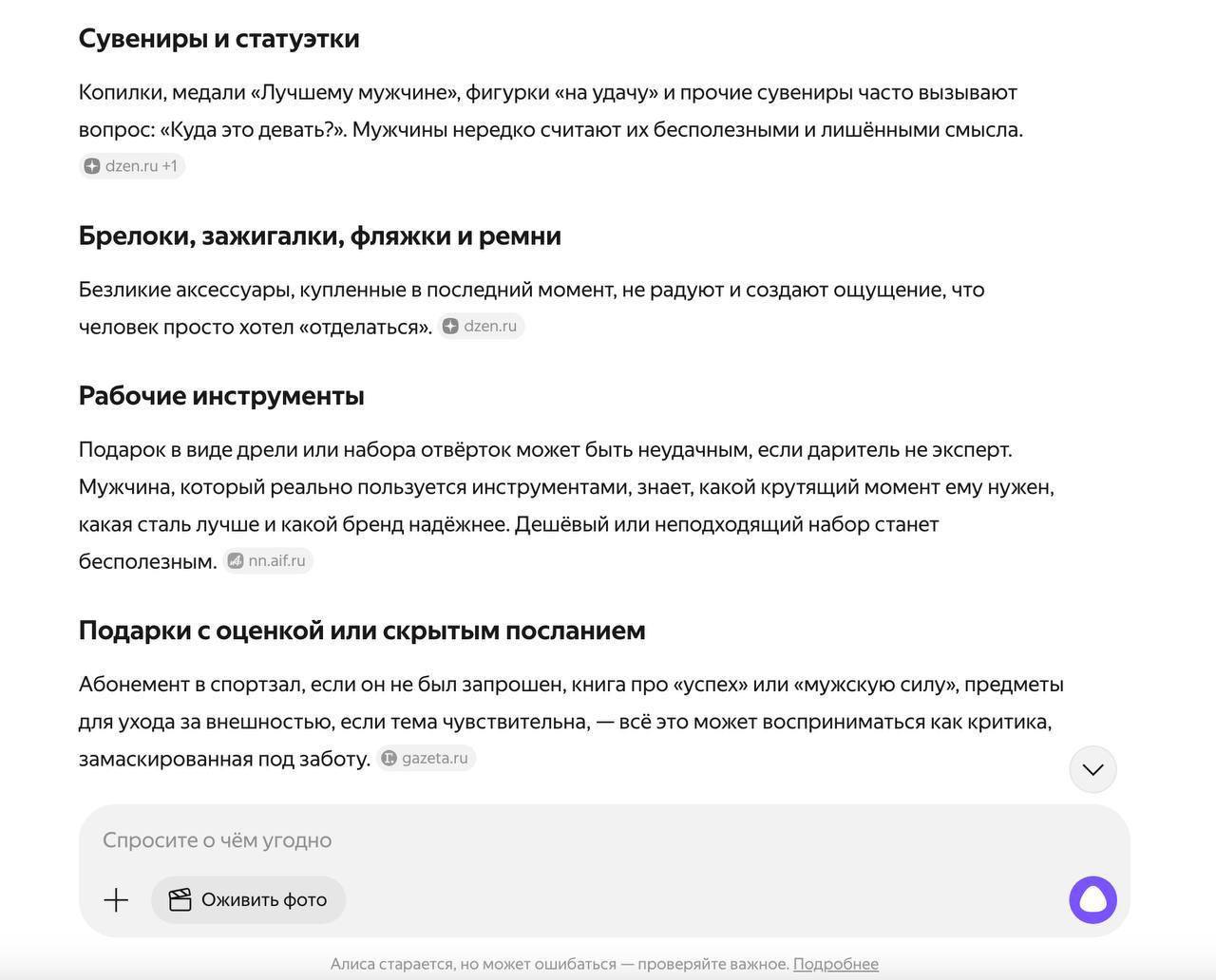 Алиса AI вынесла приговор подаркам на 23 февраля, которые бесят мужчин