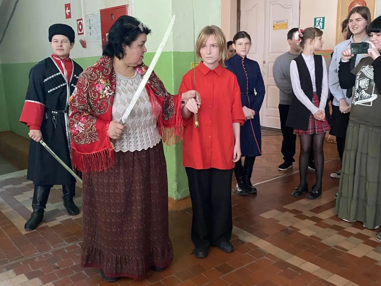 Для самых младших учеников, руководитель культурно-патриотического центра "Дончак" (созданного на базе Шахтинского городского казачьего общества "Александровск-Грушевское") Светлана Плеханова устроила настоящий праздник. Дети участвовали в забавных конкурсах. Для остальных учащихся инструктор по фланкировке и рубке казачьей шашкой Роман Плеханов и воспитанники центра "Дончак" подготовили мастер-класс по фланкировке. Мальчишки и девчонки наблюдали за виртуозными движениями мастеров, а затем с азартом пытались повторить приёмы из выступлений, чувствуя себя настоящими казаками.
