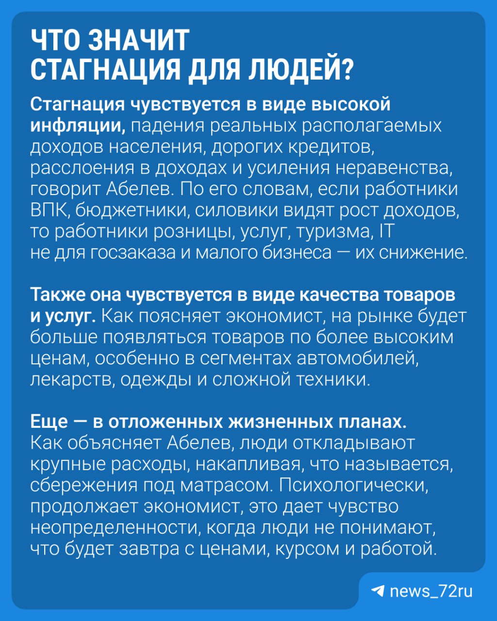 Вместе с ними обозреватель @news_72ru разбирается, что такое стагнация и что она значит для простых людей. Подробнее читайте в большом разборе.