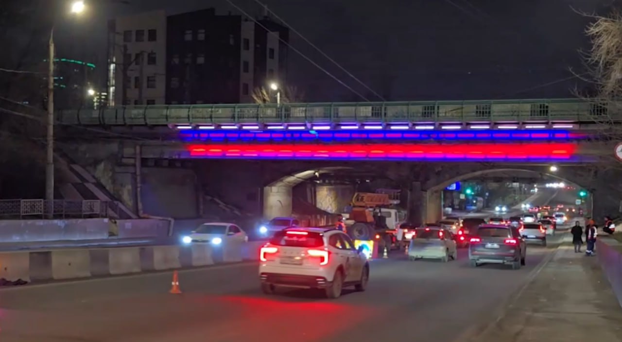 Подсветкой в цветах триколора украсили мост на Нансена в Ростове