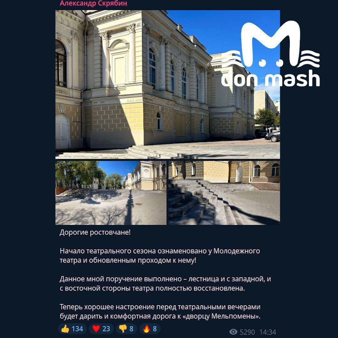 Ростовчане ожидаемо нажаловались мэру в комментах его канала и спросили: что там с личным контролем? Скрябин упорно молчит. Don Mash решил напрямую спросить у чиновника, что он думает по этому поводу, но тот не ответил на наши звонки.
