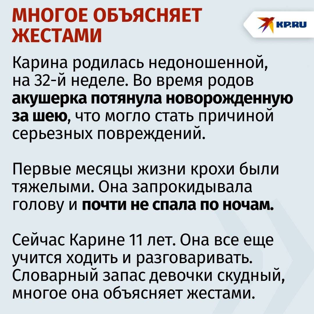 Диана Дадобаева из Ростова-на-Дону одна воспитывает особенную дочку Карину. Диагноз, по словам мамы, стал результатом родовой травмы. Сейчас малышка все еще учится простым вещам: ходить самостоятельно и больше разговаривать. Многое ребенок объясняет жестами.