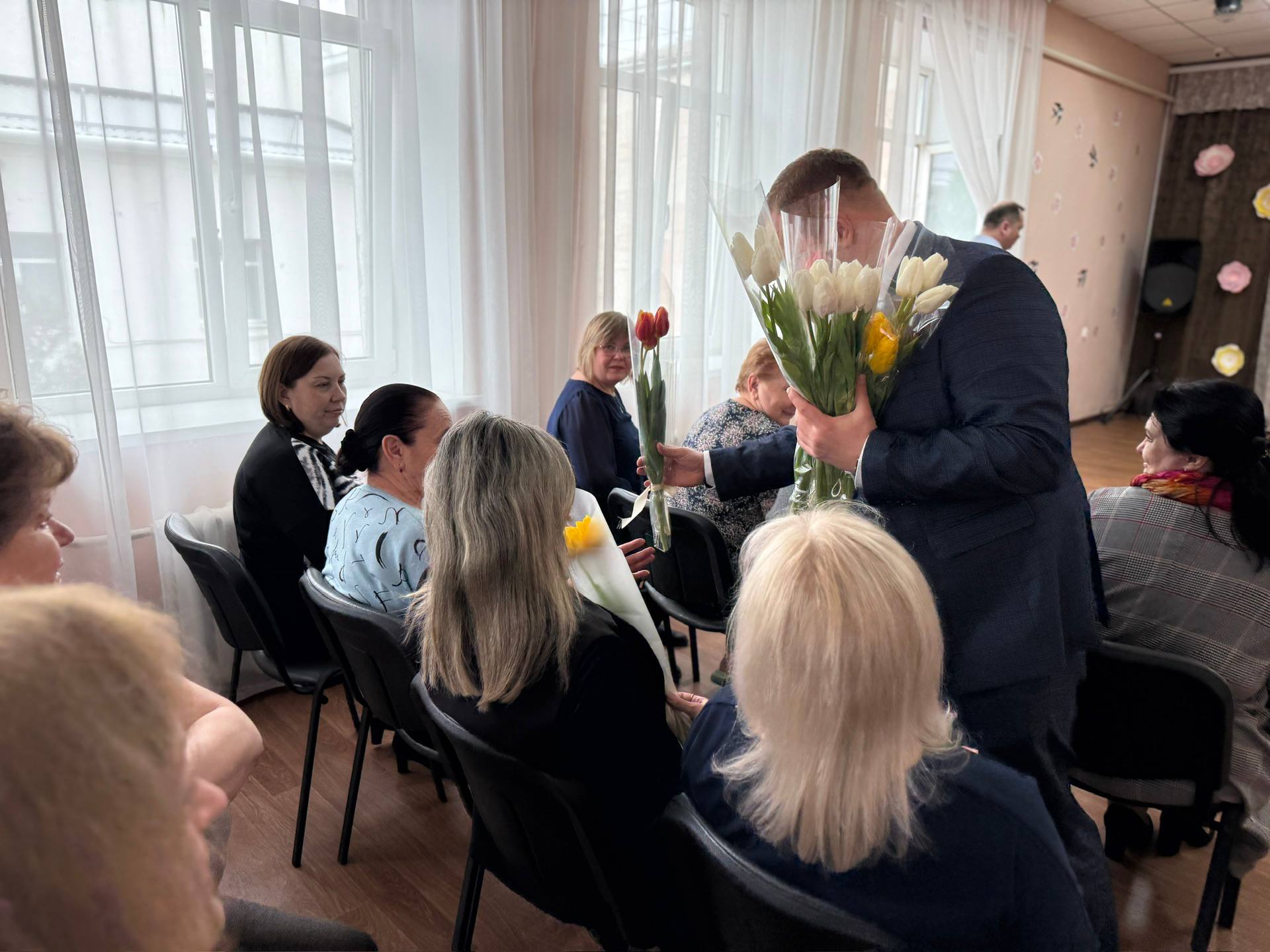 Дальше – встреча в ГКДЦ. Поздравили женщин города с наступающим праздником. Отдельные слова – женщинам из семей наших бойцов: мамам, жёнам, сёстрам. Ваша стойкость, терпение и внутренняя сила – это тот самый тыл, на котором держится все.