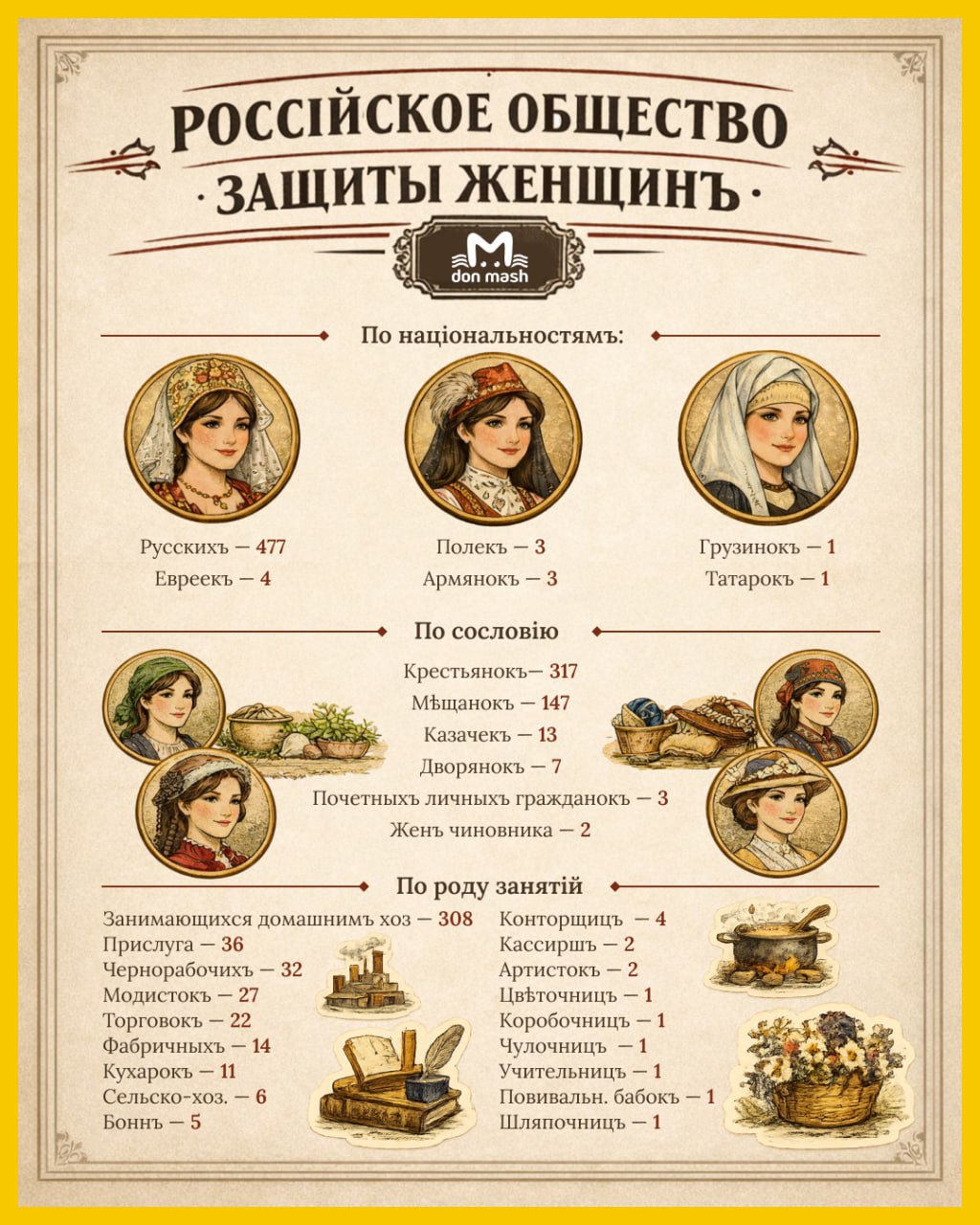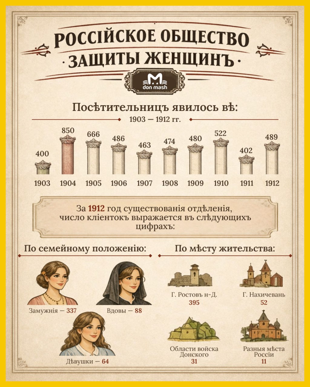 8 Марта — это не только про цветы, но и про женскую свободу. Вы знали, что в дореволюционной России ростовчанки больше всего хотели независимости от мужей, а "Общество защиты женщин" помогало её обрести? Кто и зачем обращался, смотрите в карточках. В тексте немного расскажем о самом обществе.