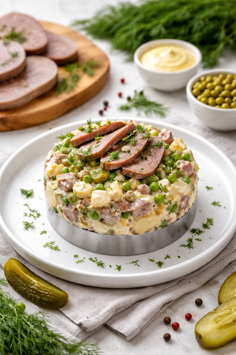 Итак, секрет этого салата в контрастах – нежный говяжий язык, хрустящий картофель, освежающий огурец и кремовый соус. Именно такое сочетание останется в памяти ваших гостей, и они снова попросят его приготовить. Такой салат не просто закуска – это настоящее гастрономическое переживание!