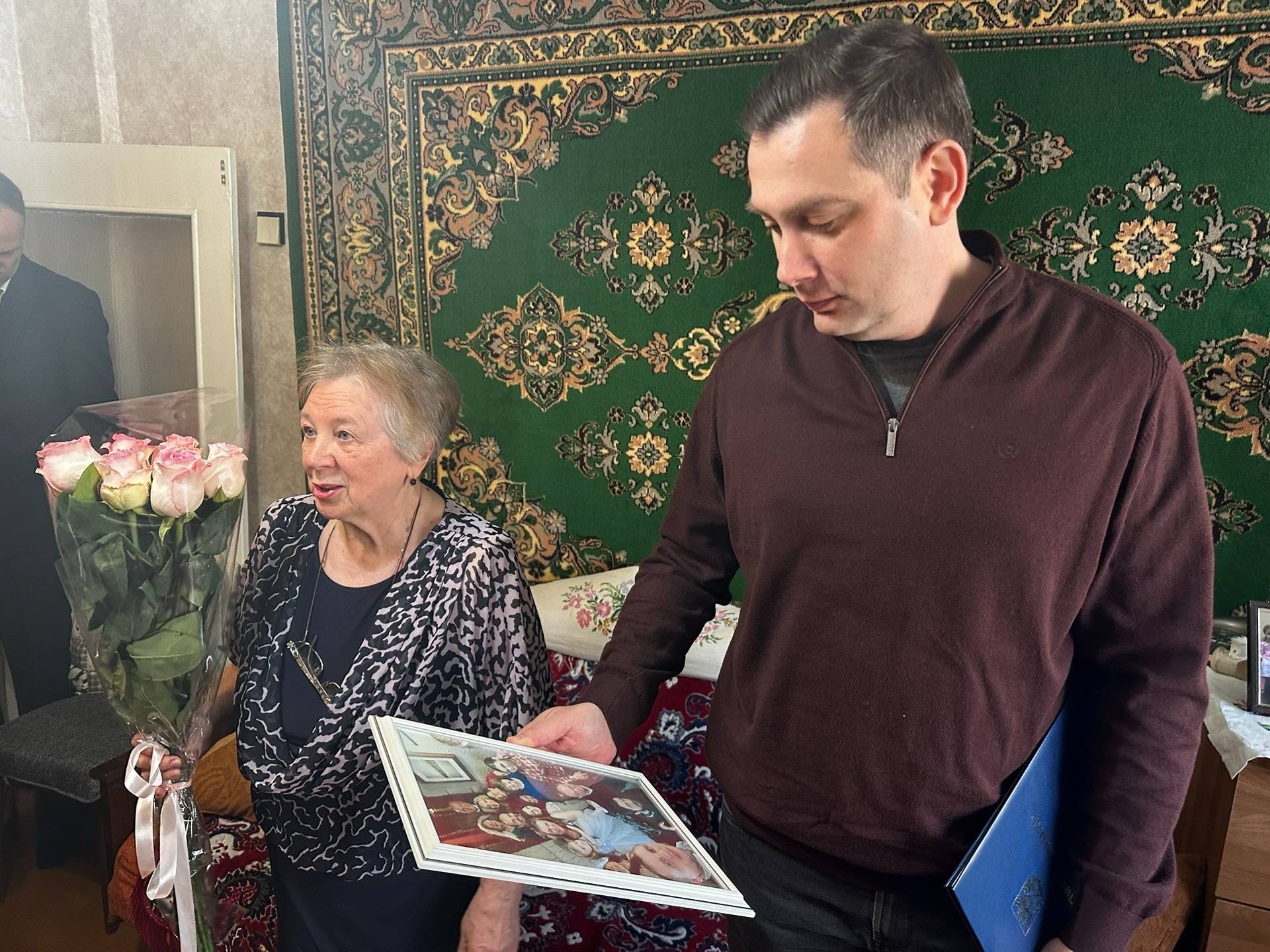 Вместе с коллегами и депутатом городской Думы Сергеем Осадчим лично поздравили юбиляршу.