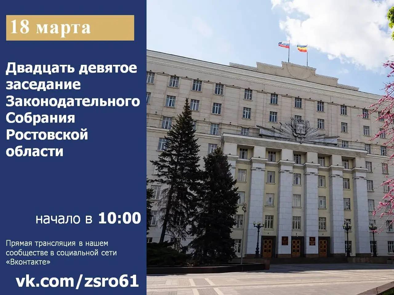 Смотрите прямую трансляцию заседания Законодательного Собрания Ростовской области в нашем сообществе в Вконтакте.