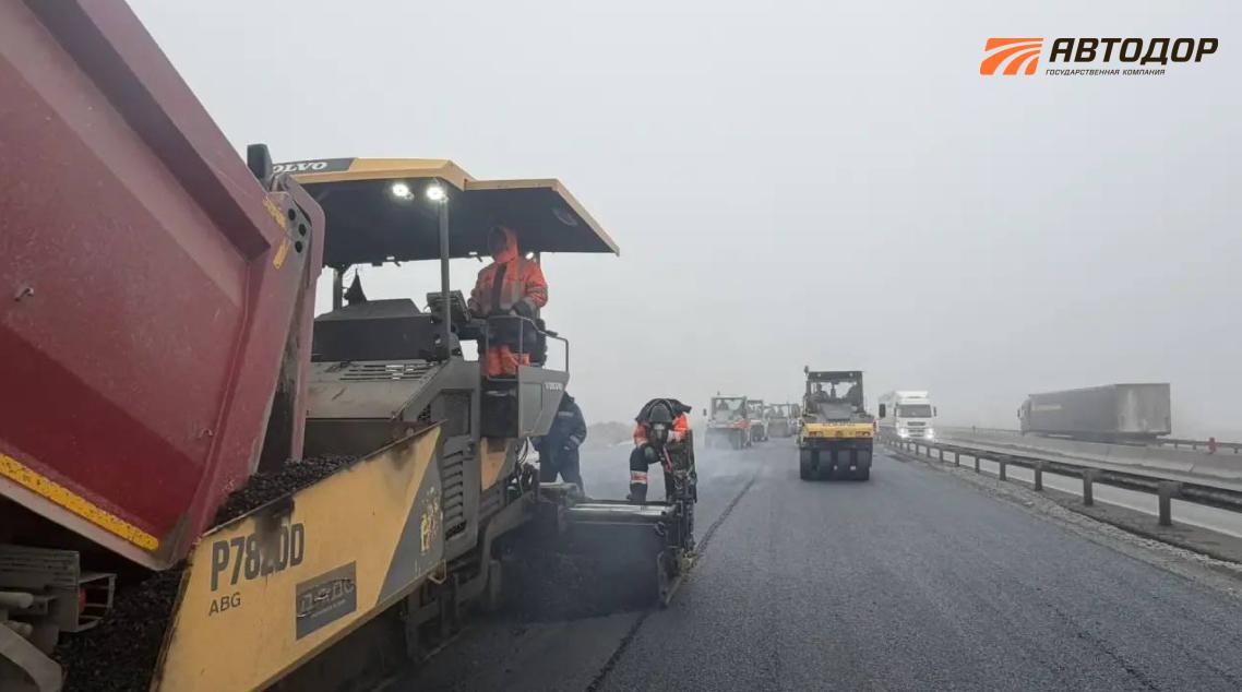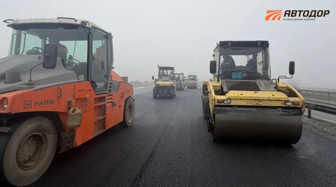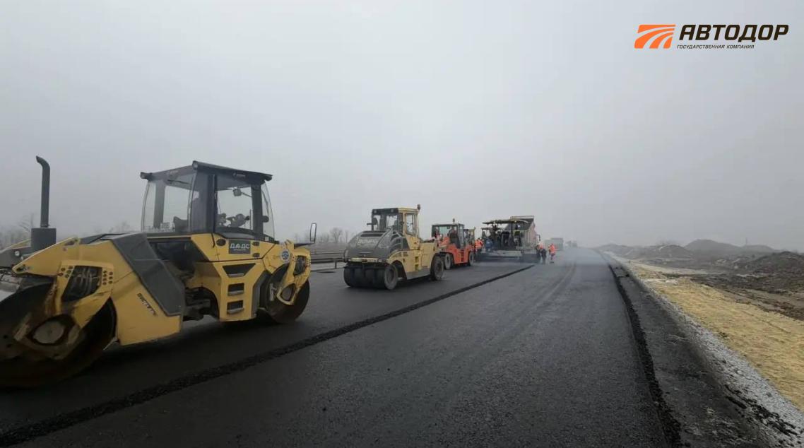 Также в ходе работ выполнено устройство дорожной одежды на участке протяженностью 23 км на всю проектную ширину на шести полосах движения.