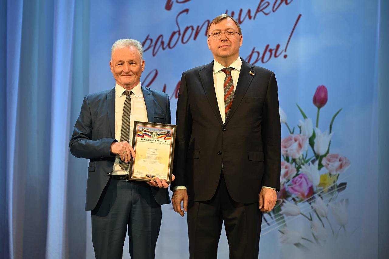 В Ростовском государственном музыкальном театре прошло торжественное собрание, посвященное Дню работника культуры. С поздравлениями выступили губернатор Донского края Юрий Слюсарь и Председатель Законодательного Собрания Ростовской области Александр Ищенко.