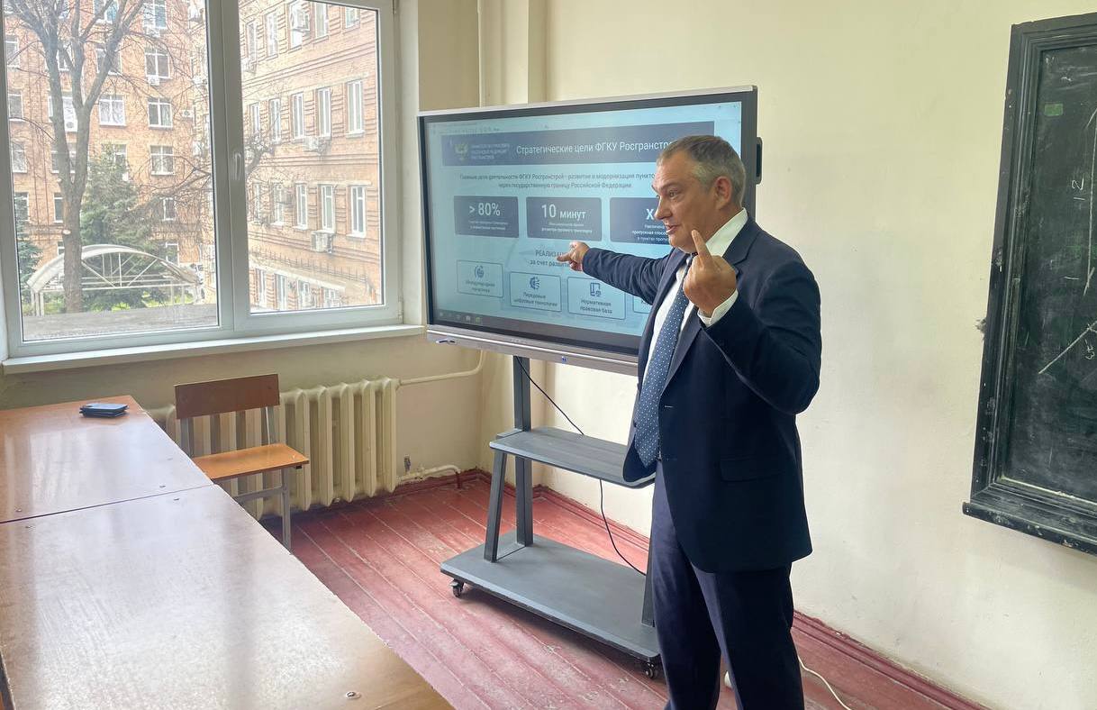 В рамках стратегического соглашения между Ростовским филиалом ФГКУ Росгранстрой и Донским государственным техническим университетом и.о. директора Ростовского филиала Николай Булыгин и начальник управления по работе с персоналом центрального аппарата Павел Медведев провели встречу со студентами кафедры промышленного и гражданского строительства