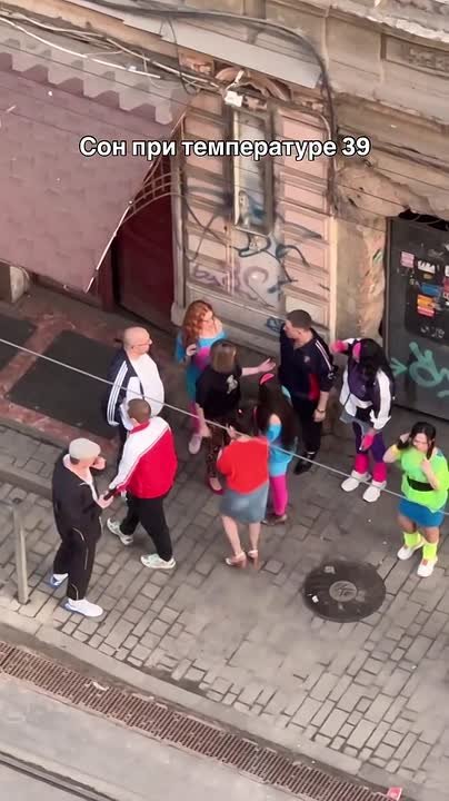На улице Станиславского творится что-то необычное — люди с телевизорами на голове, яркие костюмы и целая толпа, будто из какого-то арт-перфоманса.