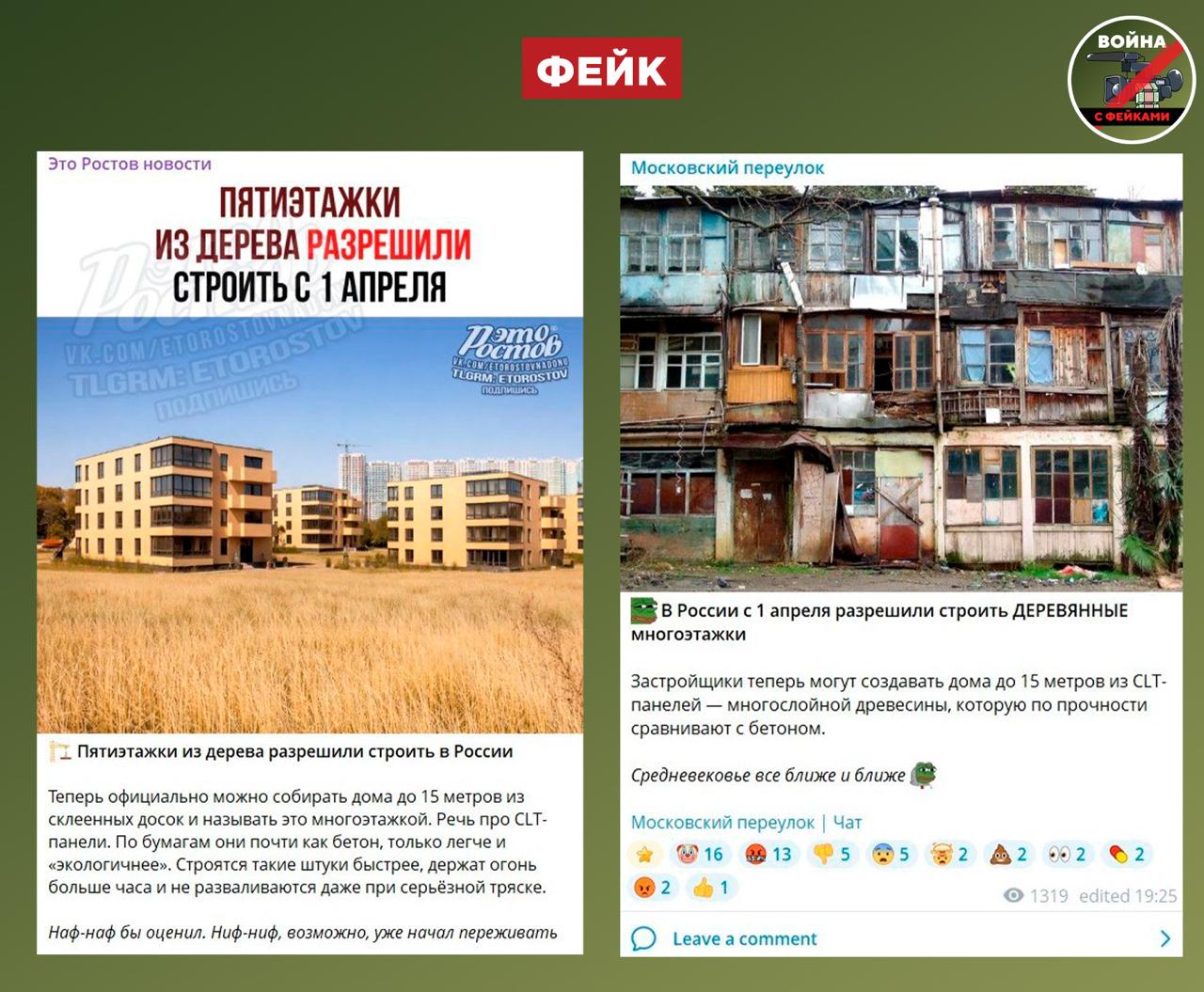Фейк: Россия возвращается в средневековье — у нас разрешили строить многоэтажки из дерева, в которых не захочет жить ни один нормальный человек. Об этом пишут некоторые телеграм-каналы.