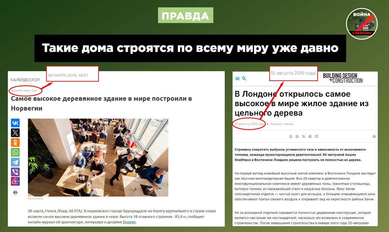 Правда: речь идет о первом своде правил пожарной безопасности для строительства пятиэтажных деревянных домов, который разработан в России. Хорошая новость, но в погоне за хайпом антироссийские каналы раздули ее так, как им выгодно.