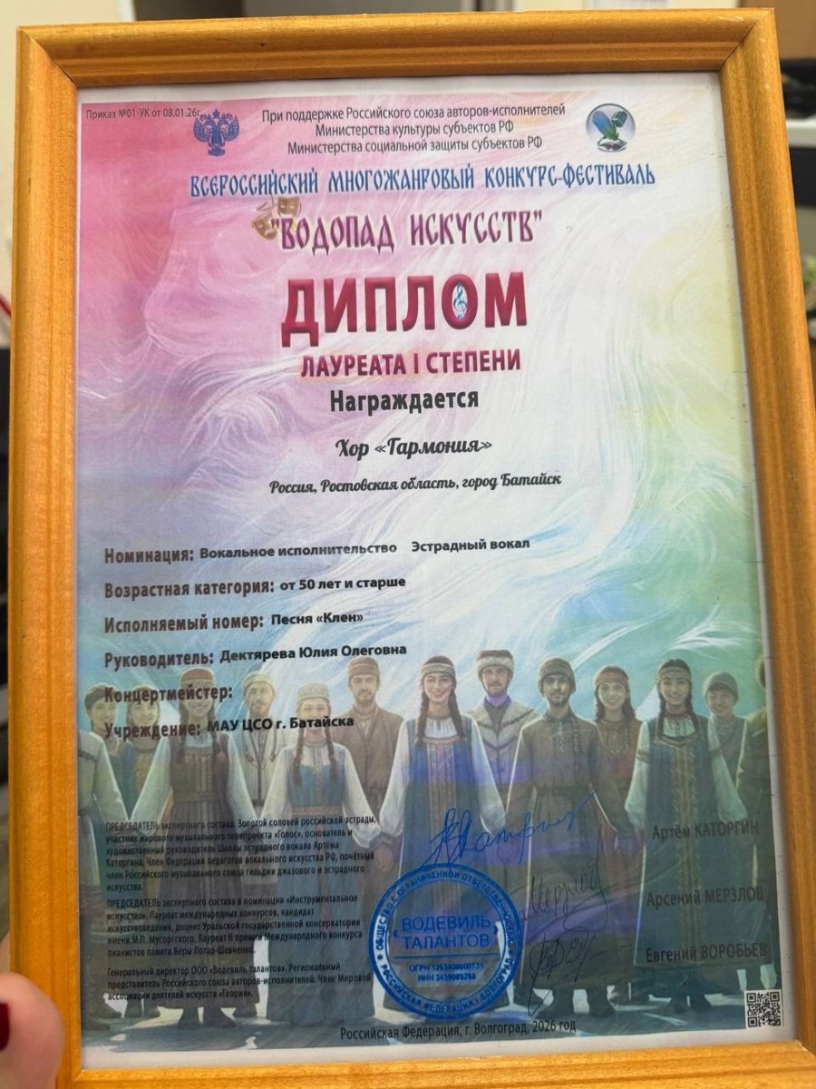 Коллектив художественной самодеятельности «Гармония» Центра социального обслуживания граждан Батайска принял участие во Всероссийском конкурсе творческих коллективов и по итогам выступления стал лауреатом I степени!