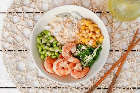Покорите вкусом: поке с креветками, чука и эдамаме