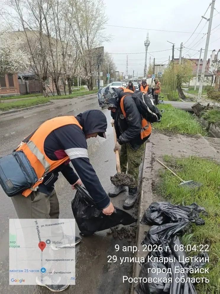 Сегодня в Батайске облачно, временами идут дожди, но подрядные организации продолжают ежедневную работу на городских улицах.
