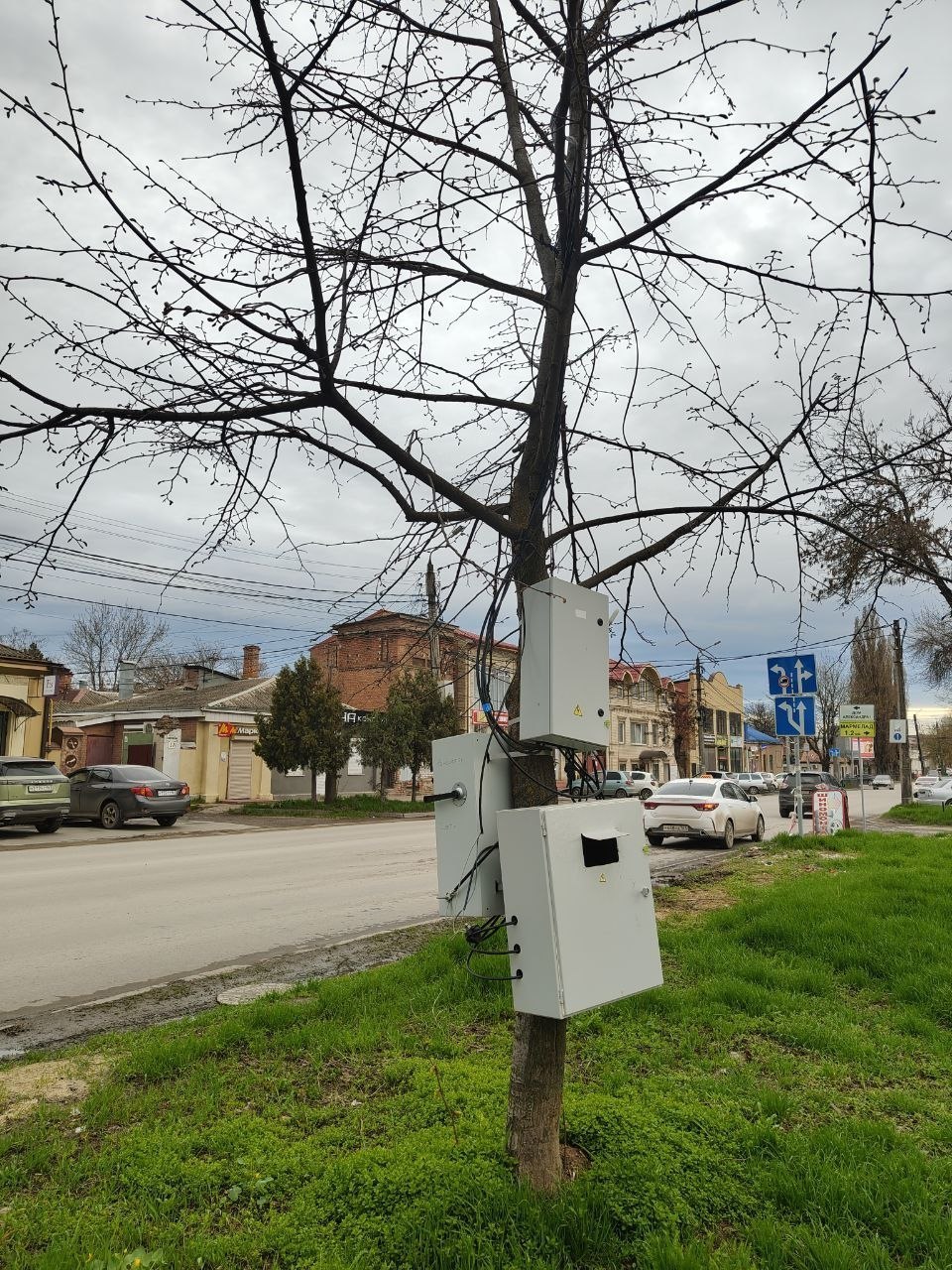 Что-то несвязно-электрическое заметили таганрожцы на дереве в переулке Смирновском. Коннект с инопланетянами, майнеры шалят или неудачная времянка?