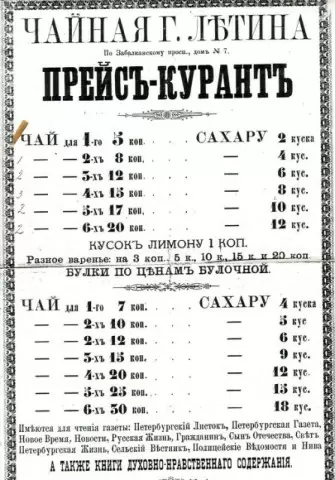 Кроме того, формулировка «Кусок лимону» вызывает улыбку и непременно должна произноситься с особым акцентом при заказе. Но нельзя не заметить и примечательный раздел в нижней части прейскуранта, где представлен список газет для чтения. Он завершается выразительной строчкой: «А также книги духовно-нравственного содержания».