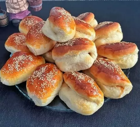 - Далее, тесто делится на небольшие порции. Каждую из них раскатывают, наполняя начинкой, и формируют булочки либо пирожки.