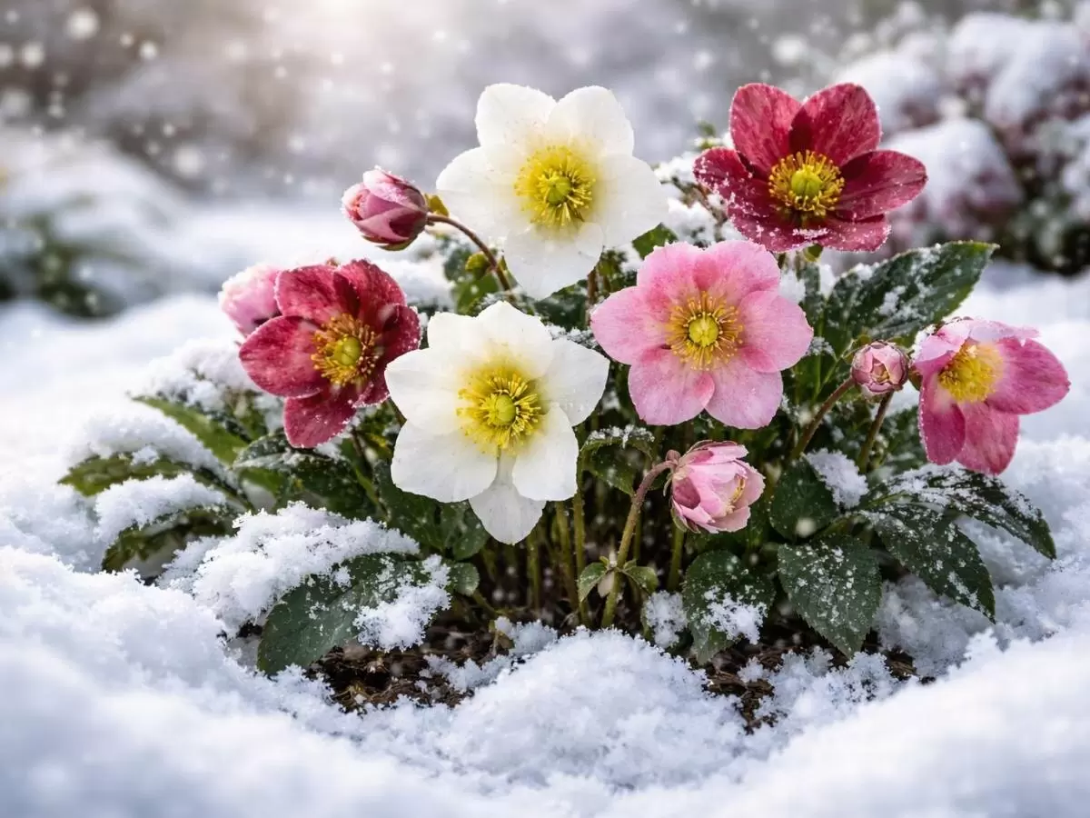 Одним из главных героев зимнего сада является морозник, известный как рождественская роза. Это удивительное растение способно пробиваться сквозь снежный покров и цвести в то время, когда остальные цветы находятся в состоянии покоя. Морозник не только вынослив, но и прекрасно чувствует себя в тенистых уголках сада, где зимние цветы становятся настоящей находкой.