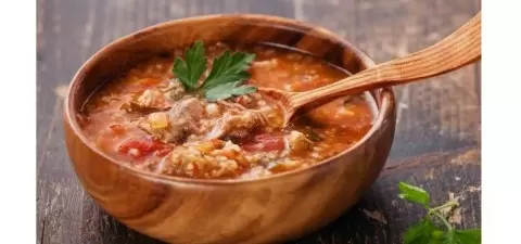 - На вид получится простой мясной суп с томатами, далекий от подлинного харчо.