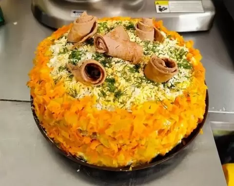 Этот нежный и вкусный салат 'Мужские грёзы' станет настоящем украшением вашего стола. Он идеально подходит для дружеских встреч и семейных праздников. Приятного аппетита!