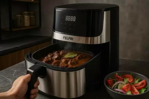 Ищете способ быстро и вкусно приготовить ужин, не тратя время на мытьё множества кастрюль? Рецепт томлёной телятины в аэрогриле станет вашим спасением. Это блюдо сочетает в себе нежность мяса и густой насыщенный соус, и всё это без капли масла благодаря уникальному способу томления.