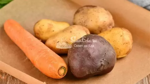Начинается всё с тщательной промывки овощей: картофеля, свеклы и моркови. Овощи следует хорошо высушить с помощью бумажных полотенец. Количество выбирается в зависимости от того, сколько нужно для салата. Но помните, чем больше овощей, тем лучше!