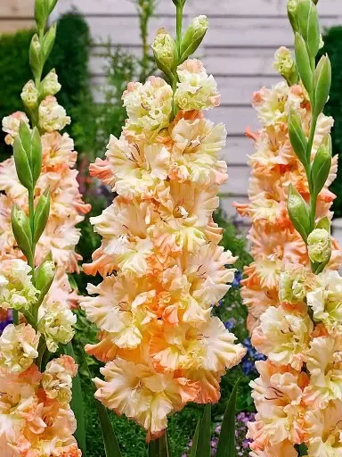 Этот стройный и элегантный сорт достигает высоты до 110 см и расцветает в конце лета, добавляя яркости в сад (VIII–IX). Его крупные соцветия формируют плотный колос, создавая эффект «светящейся» вертикали. Этот гладиолус прекрасно подходит для срезки: цветы сохраняют форму и постепенно распускаются в букете, обеспечивая долгую свежесть и объемность композиции.