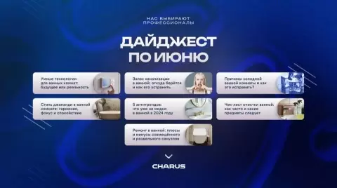 Это всего лишь небольшая часть тем, затронутых в статьях CHARUS. Погрузитесь в мир свежих идей для вашего дома и сделайте вашу ванную комнату не просто функциональным пространством, но и стильным уголком для отдыха!
