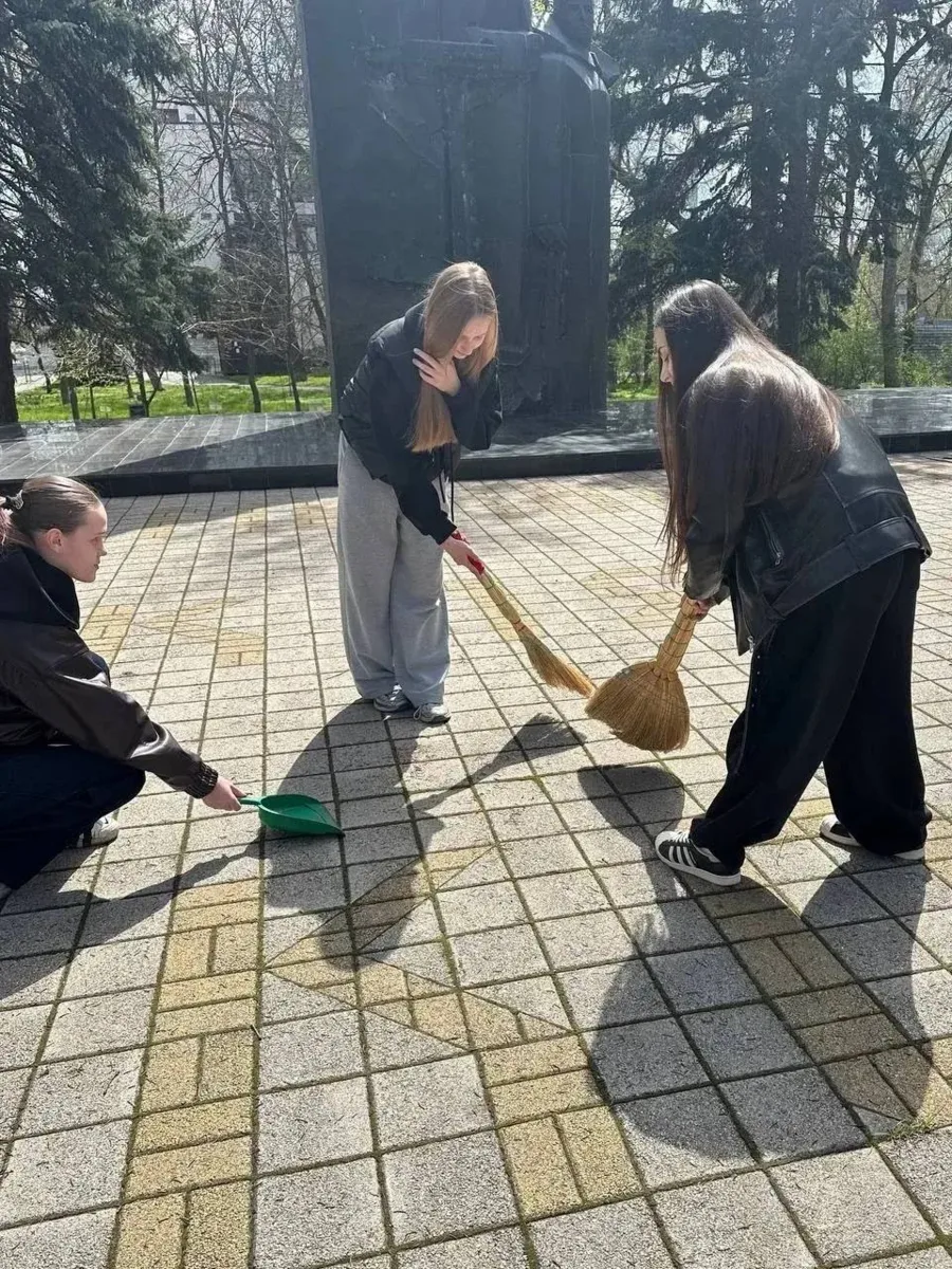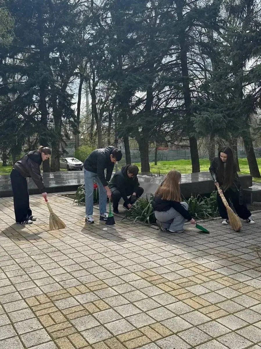 На выходных учащиеся школы №2 вышли на субботник и навели порядок на прилегающей территории памятника «Клятва поколений».