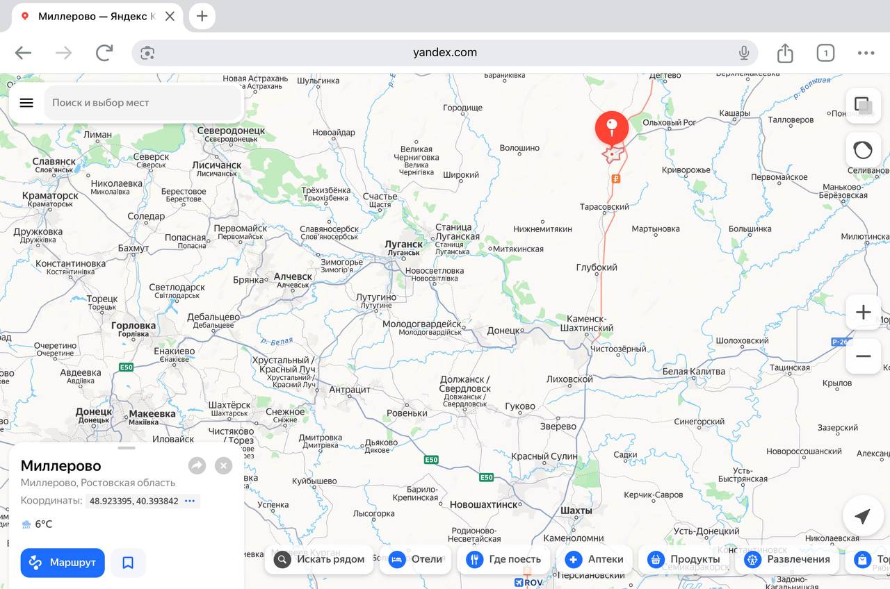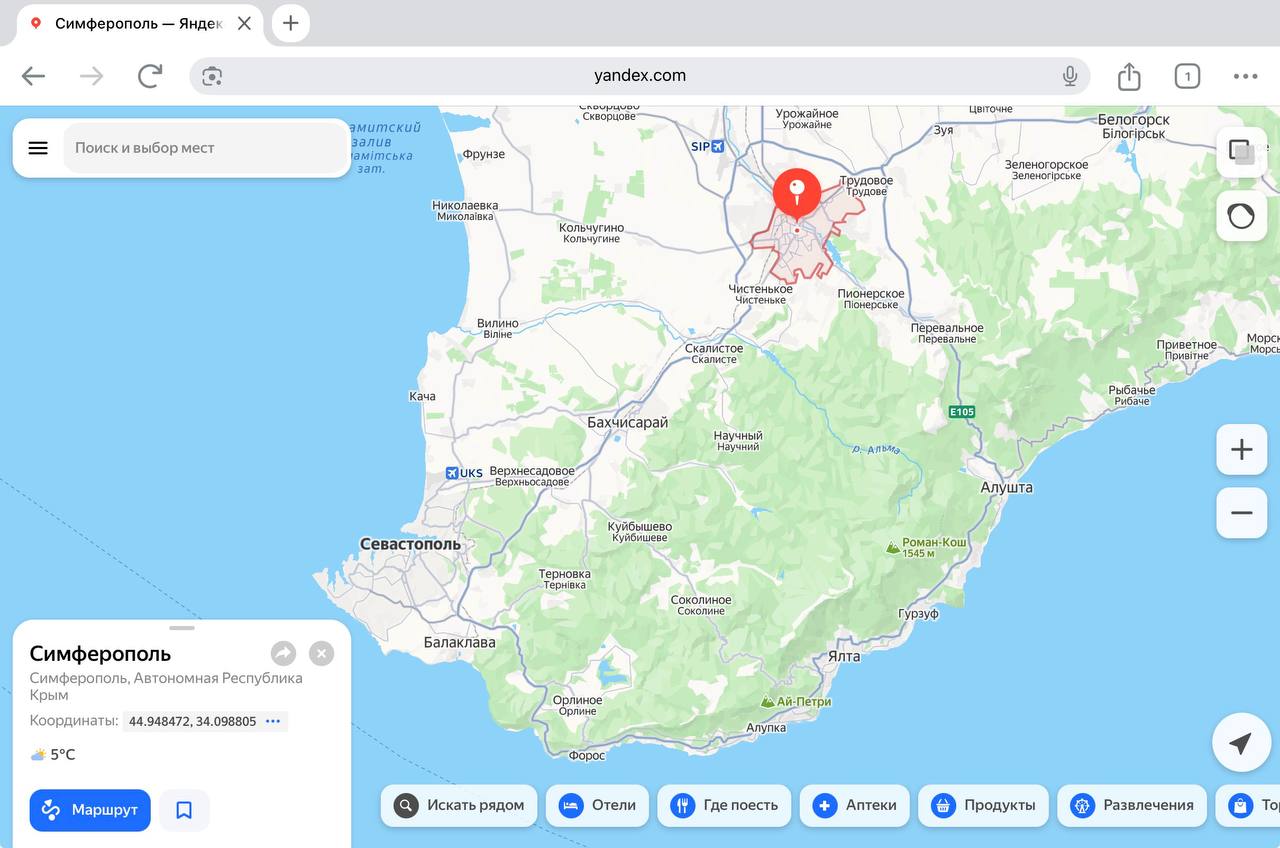 Если вы не в России (или ваш IP адрес не в России), то при попытке зайти на Яндекс карты по адресу https://yandex.ru/maps, вам откроется карта на международном домене yandex.com/maps. А там города Крыма и четырех российских регионах подписаны на русском (у кого-то на английском) и украинском. Населенные пункты Ростовской области (на скрине 3) — только на русском.