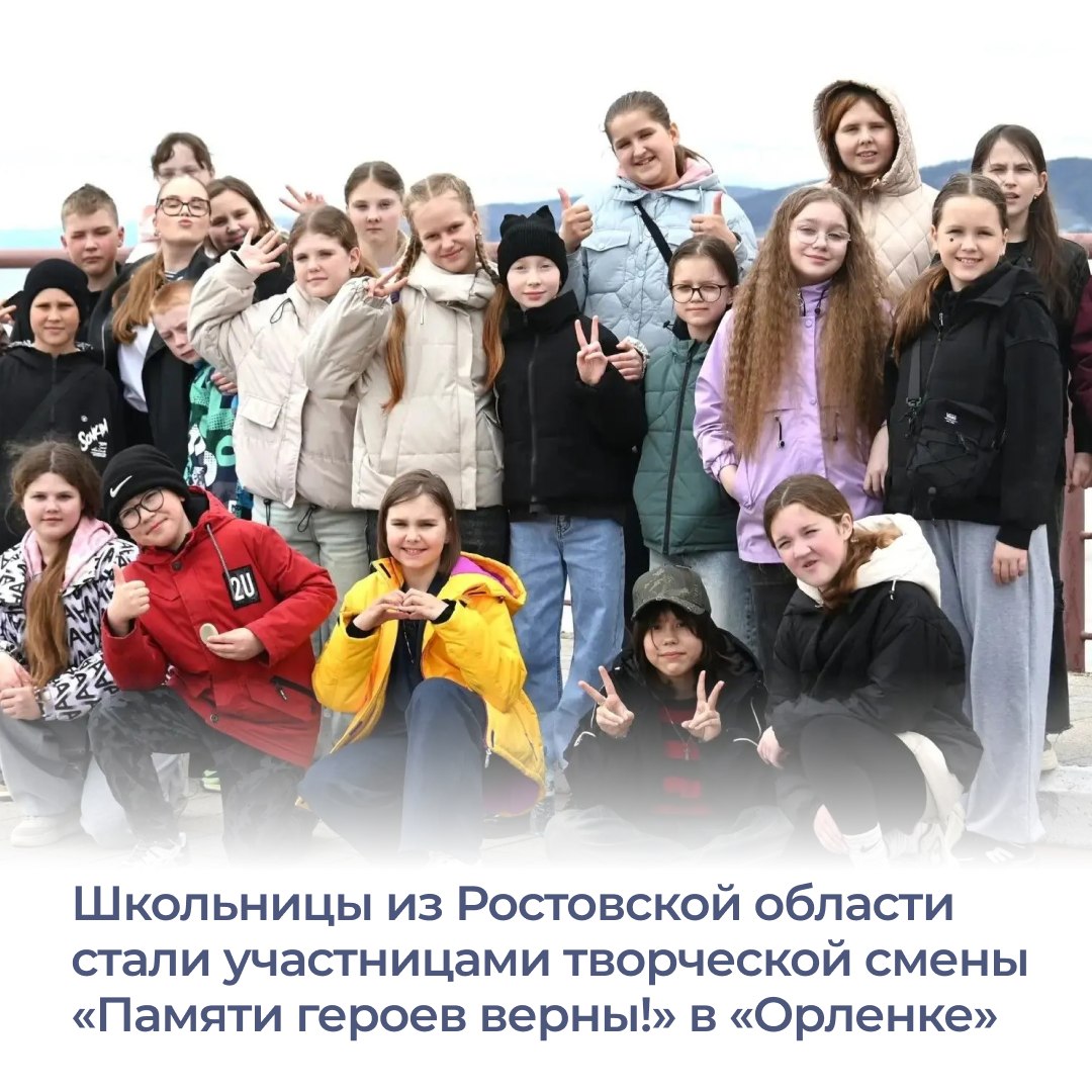 Донские школьницы отправились в «Орленок» благодаря в победе в творческом конкурсе. Лика Касаркина из Новочеркасска и Каролина Кубракова из Аксайского района находятся на сопровождении ростовского филиала фонда «Защитники Отечества». В числе 60 талантливых ребят они стали участницами творческой смены «Памяти героев верны!».