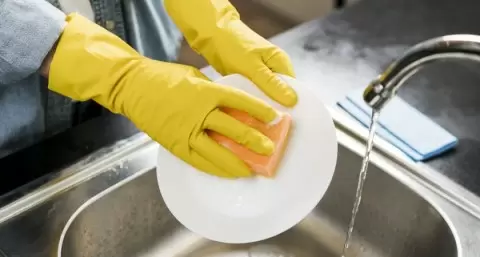 Иногда посуду можно мыть без дополнительных инструментов, просто руками. Этот метод подходит для одной чашки или тарелки, но, по мнению экспертов, он малопродуктивен. Моющие средства и горячая вода могут раздражать кожу, а жир и остатки пищи плохо удаляются без помощи инструментов. Для регулярного мытья посуды лучше использовать щетку или губку, дополняя процесс обычными хозяйственными перчатками.