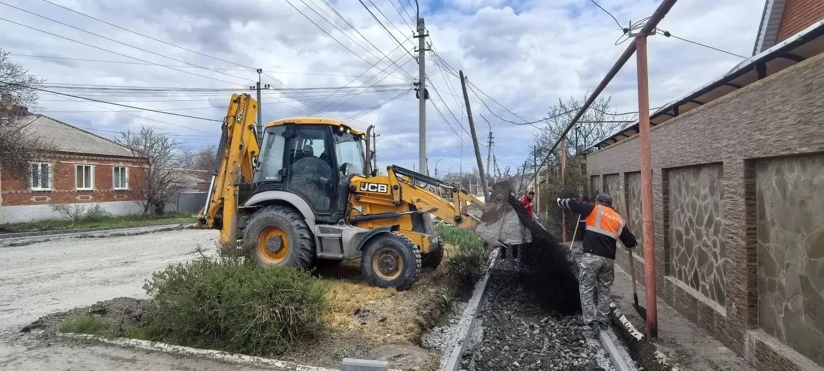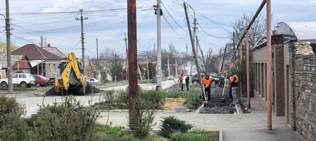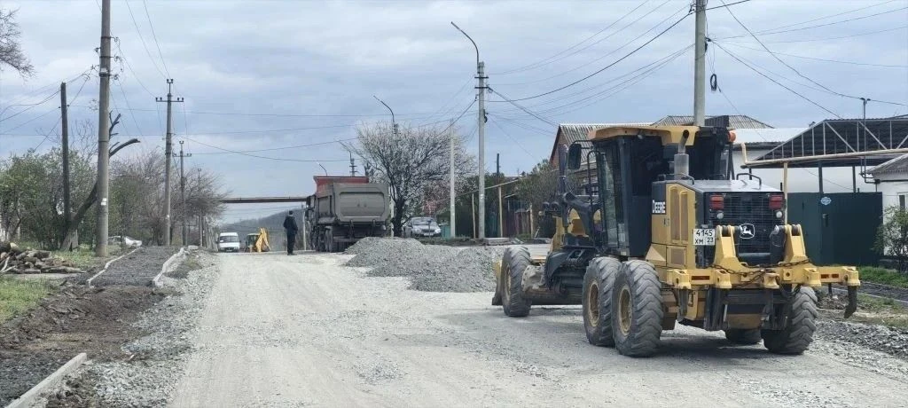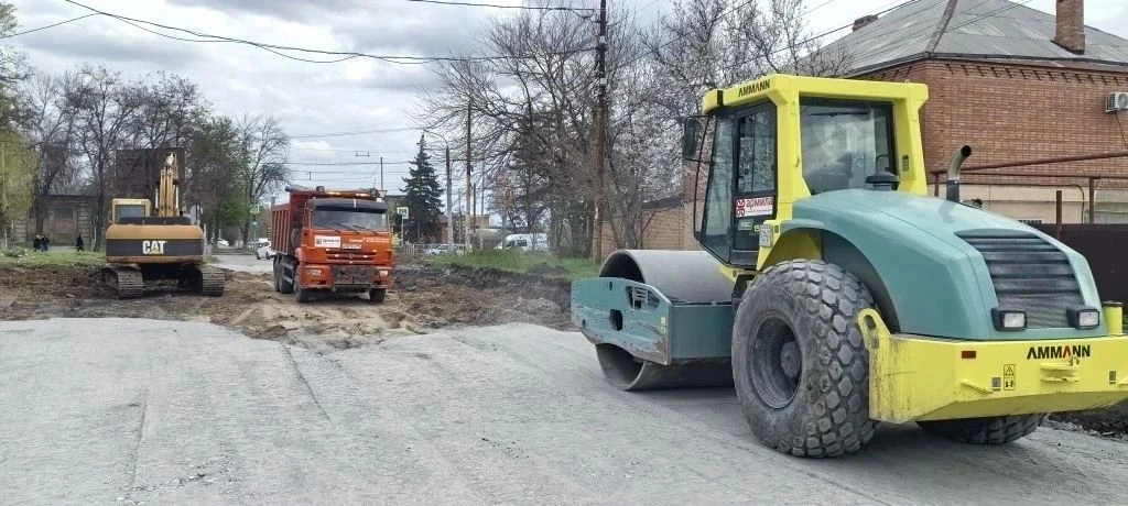 Подрядной организацией выполняется разборка существующей дорожной одежды, уплотнение земляного полотна и устройство подстилающих и выравнивающих слоёв основания автомобильной дороги. Также специалисты создают основание тротуара.