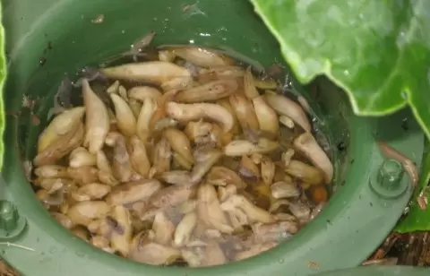 - Ловушки с пивом: вкопайте пластиковые стаканы заподлицо с поверхностью почвы и заполните их пивом. Слизни не смогут устоять перед такой приманкой и погибнут в жидкости.