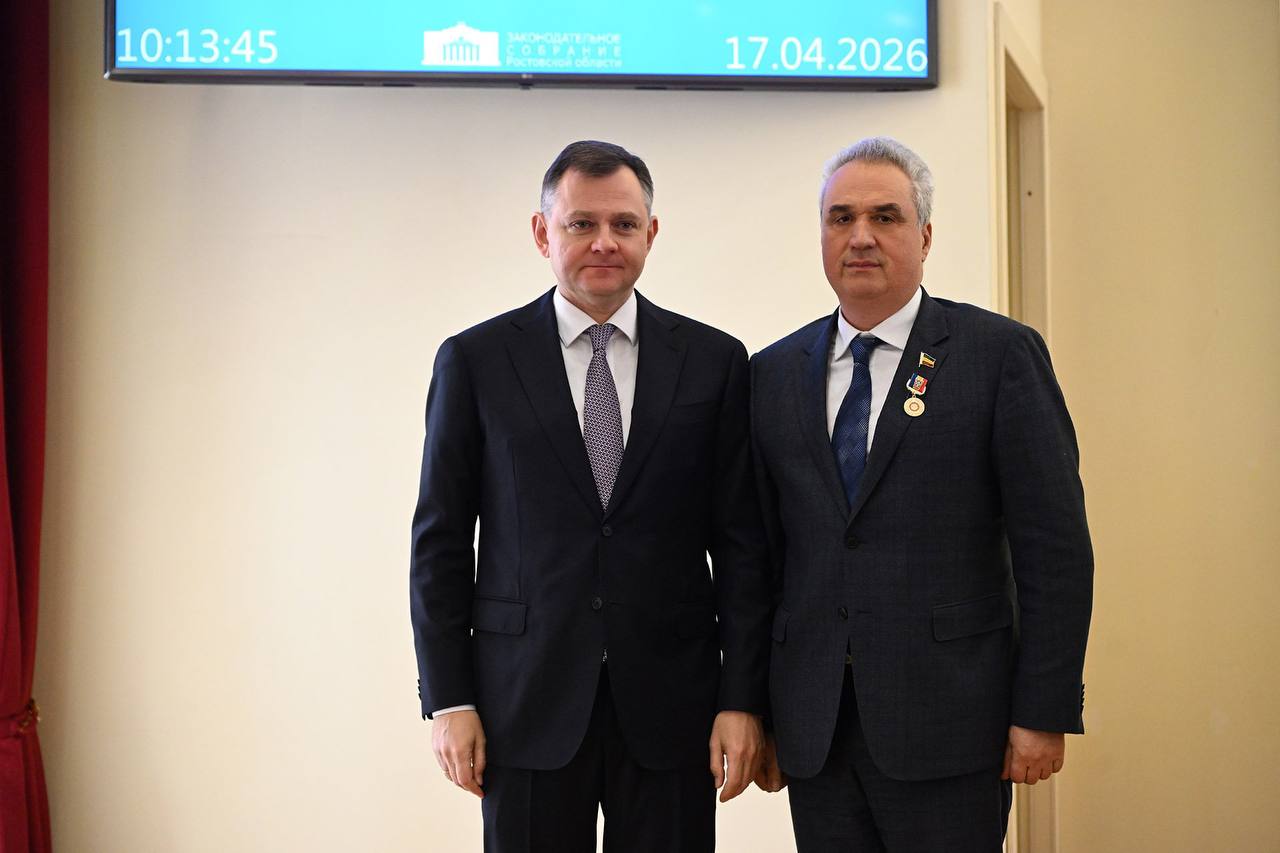 Губернатор Юрий Слюсарь вручил медали «За доблестный труд на благо Донского края» депутатам Законодательного Собрания Ростовской области Сергею Ковалеву и Виктору Хлыну.