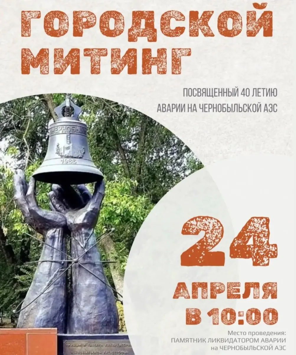 В 10:00 у памятника ликвидаторам аварии на Чернобыльской АЭС состоится городской митинг памяти.