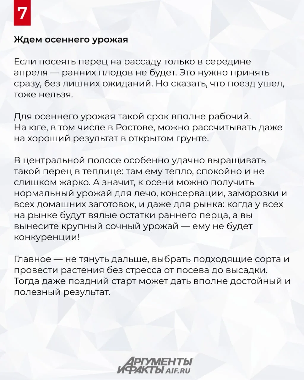 Сверхраннего урожая при апрельском посеве не будет — перец растёт медленно. Но к осени получится собрать достаточно плодов для лечо, консервации, заморозки и других заготовок.