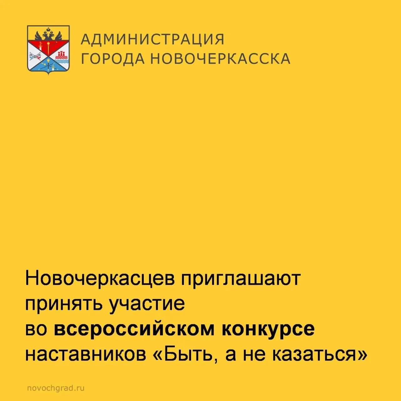 Новочеркасцев приглашают принять участие во всероссийском конкурсе наставников «Быть, а не казаться», организованном Российским центром гражданского и патриотического воспитания детей и молодежи по поручению Президента Российской Федерации.