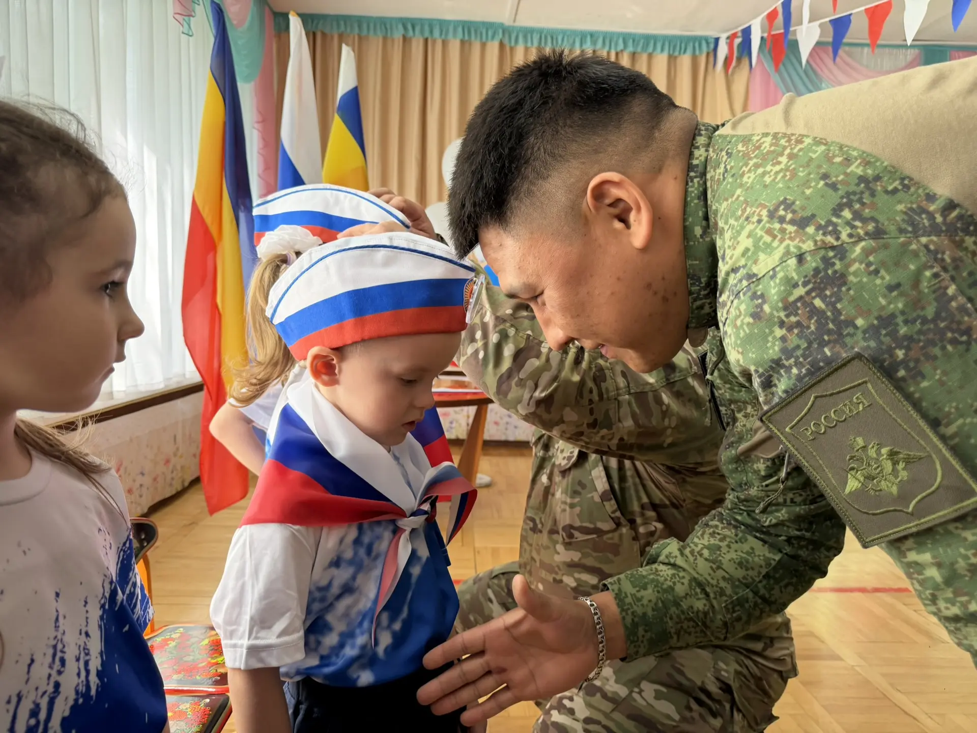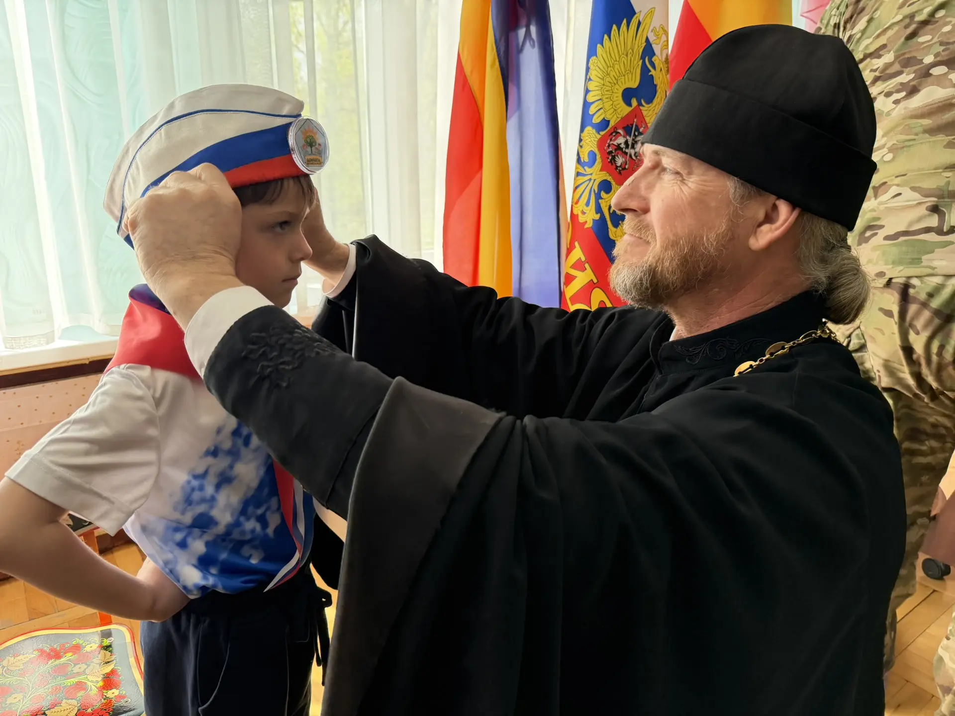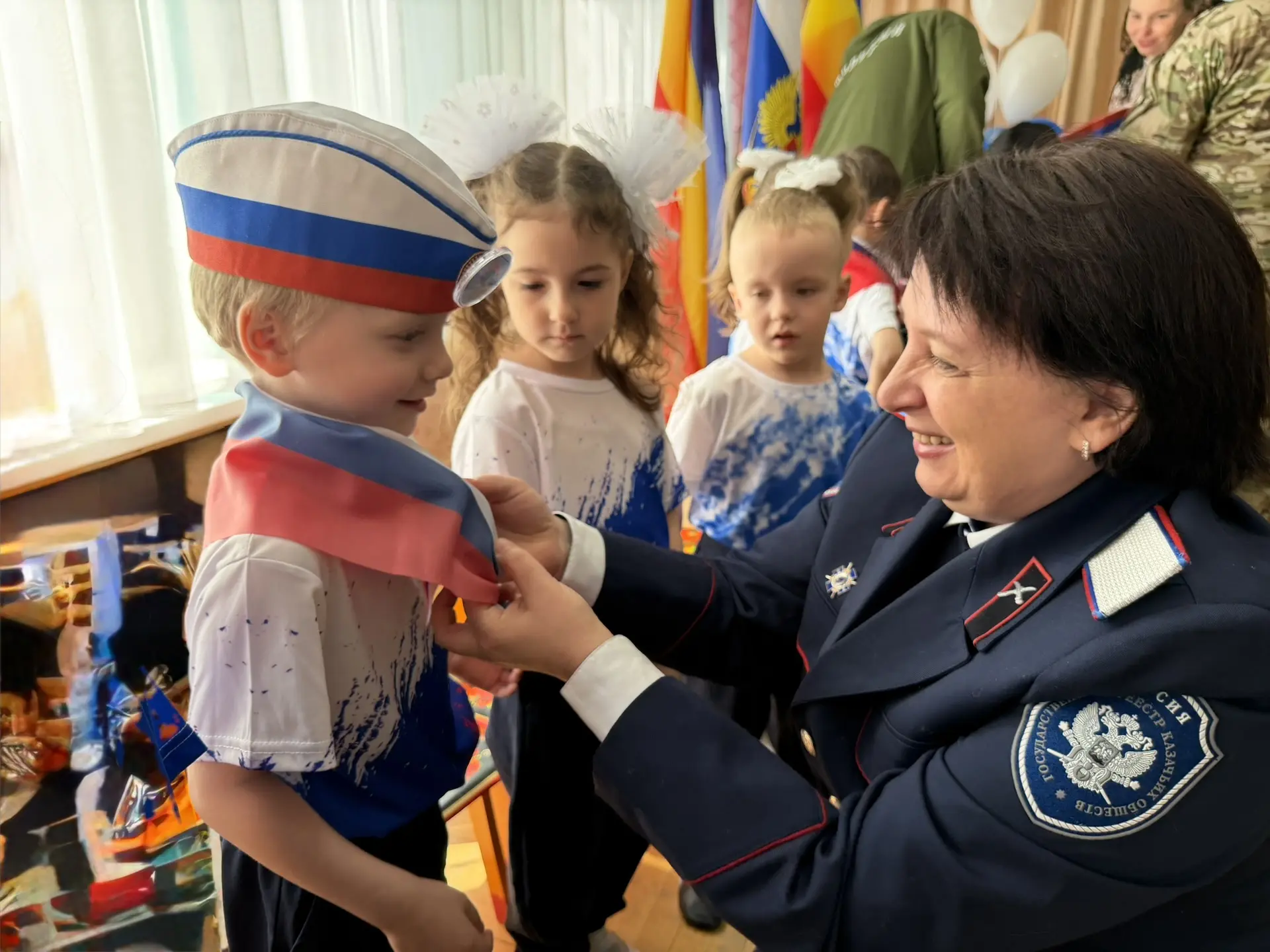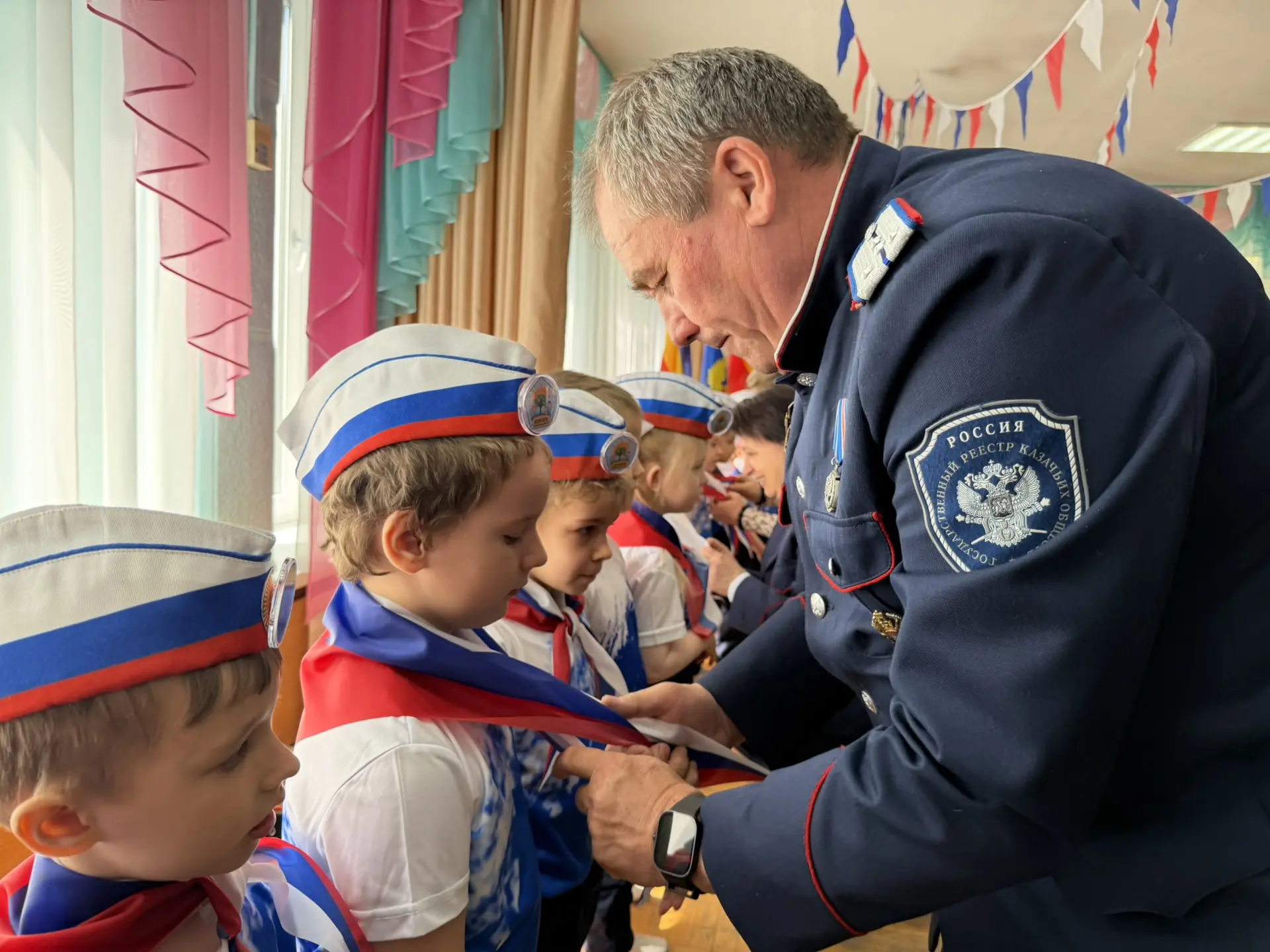 В знак вступления в клуб гости завязали юным «Дончатам» галстуки и надели пилотки, символизирующие связь поколений и патриотический долг.