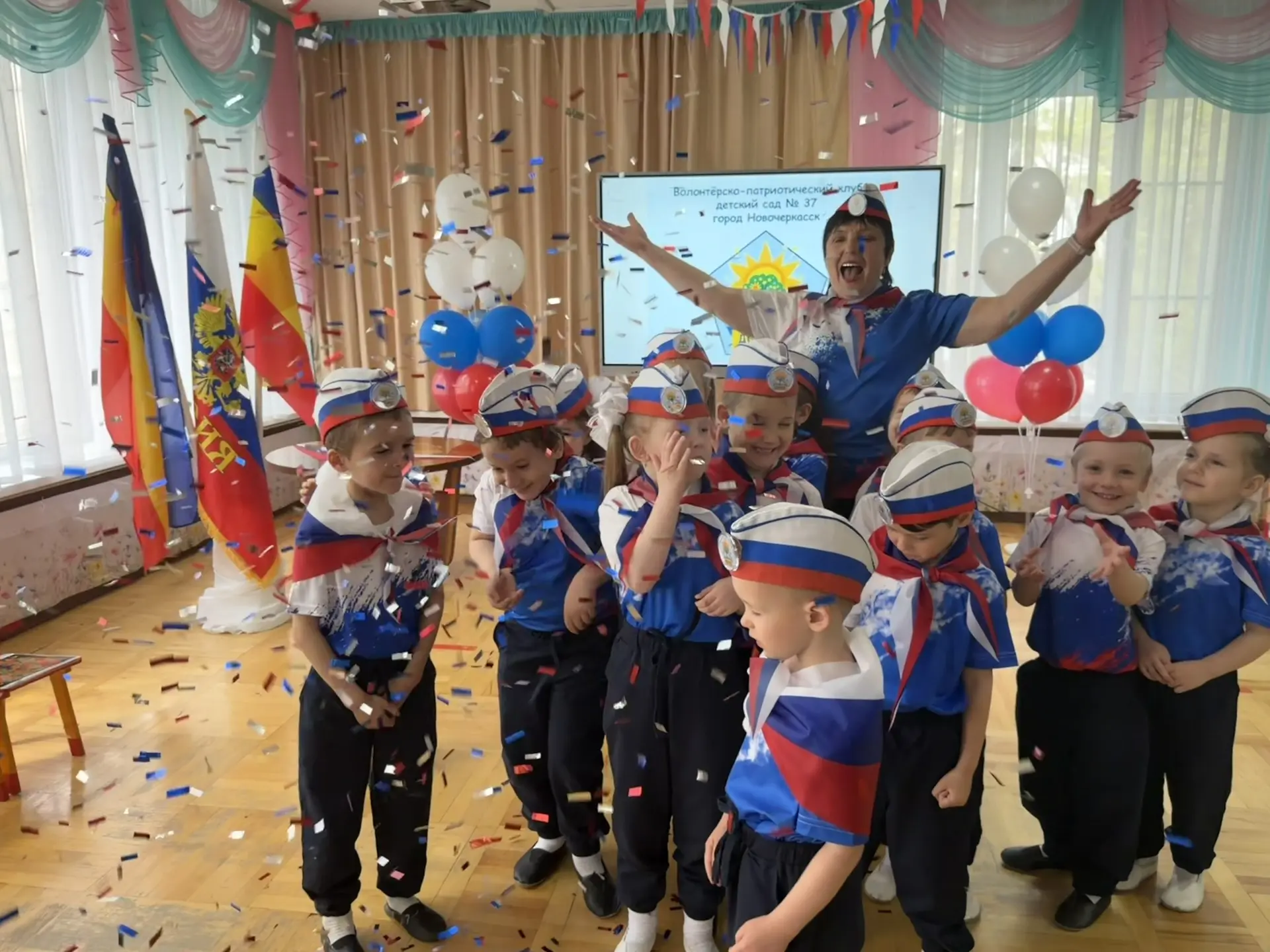 Сегодня в детском саду №37 состоялось торжественное открытие волонтёрско-патриотического клуба «Дончата». Воспитанников старшей группы приняли в его ряды.