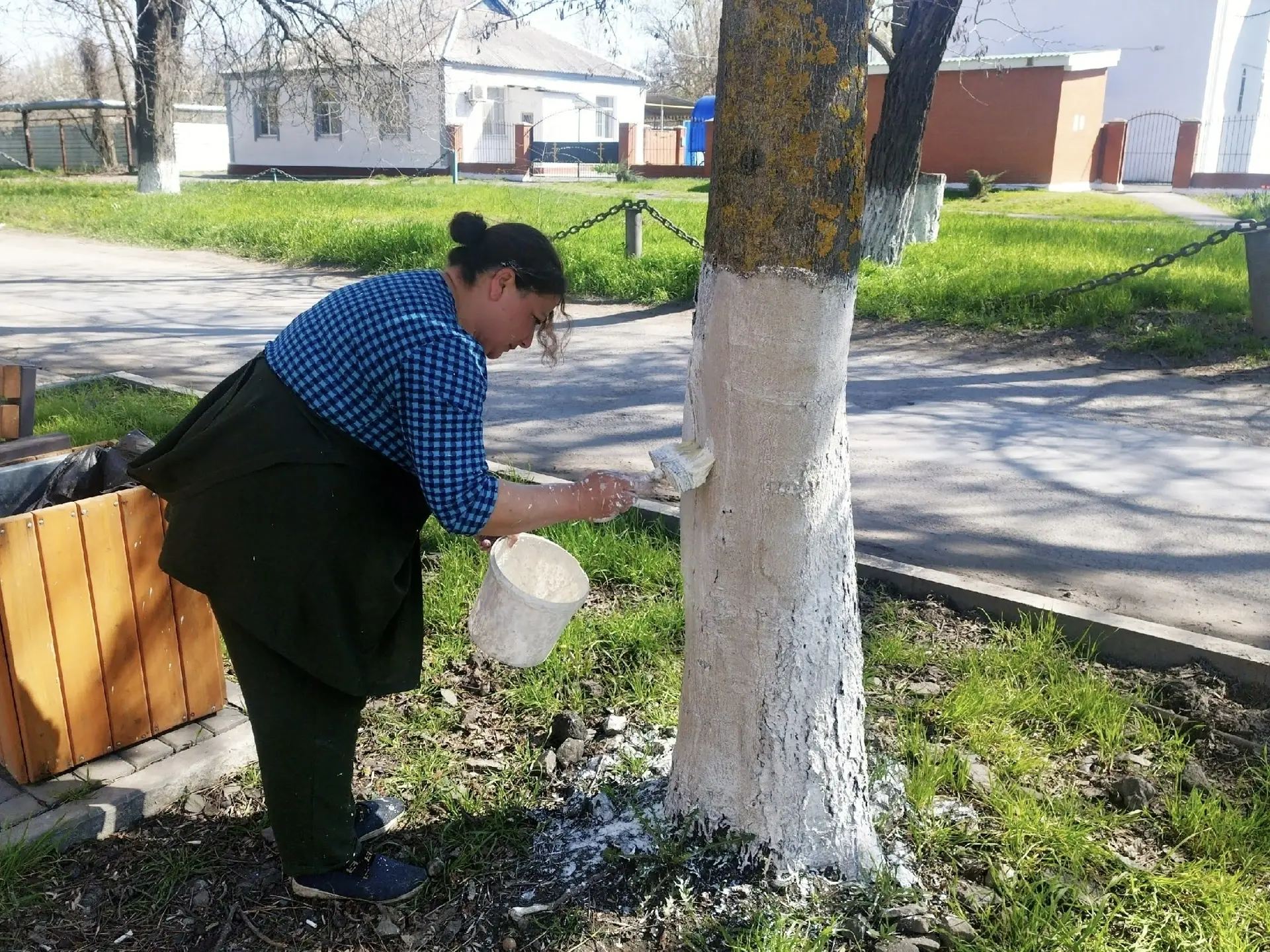 Только в посёлке Майский уже побелено 1350 деревьев, на Нежданной — 310, а с предыдущей недели к этому числу добавилось ещё 221 дерево на бульваре Алллейный.