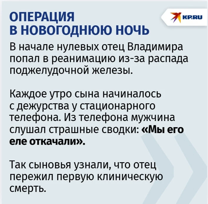 Новогодние праздники в начале нулевых обернулись для Владимира Кондрашова настоящим кошмаром. Его отец оказался в реанимации из-за проблем со здоровьем.