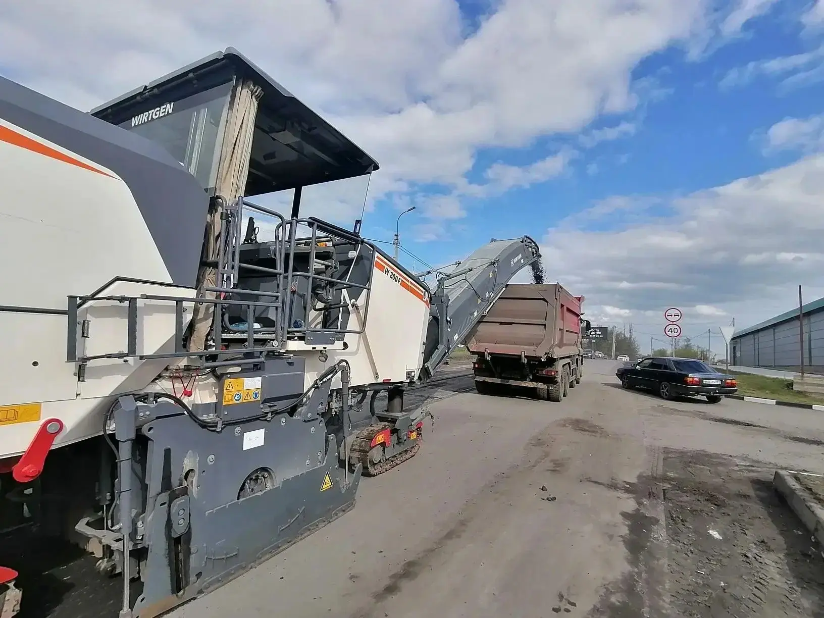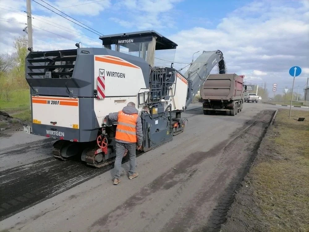В настоящее время подрядная организация ООО "Армила" выполняет работы по разборке существующего асфальтобетонного покрытия методом холодного фрезерования автомобильной дороги, а также производит работы по прокладке трассы тротуара.