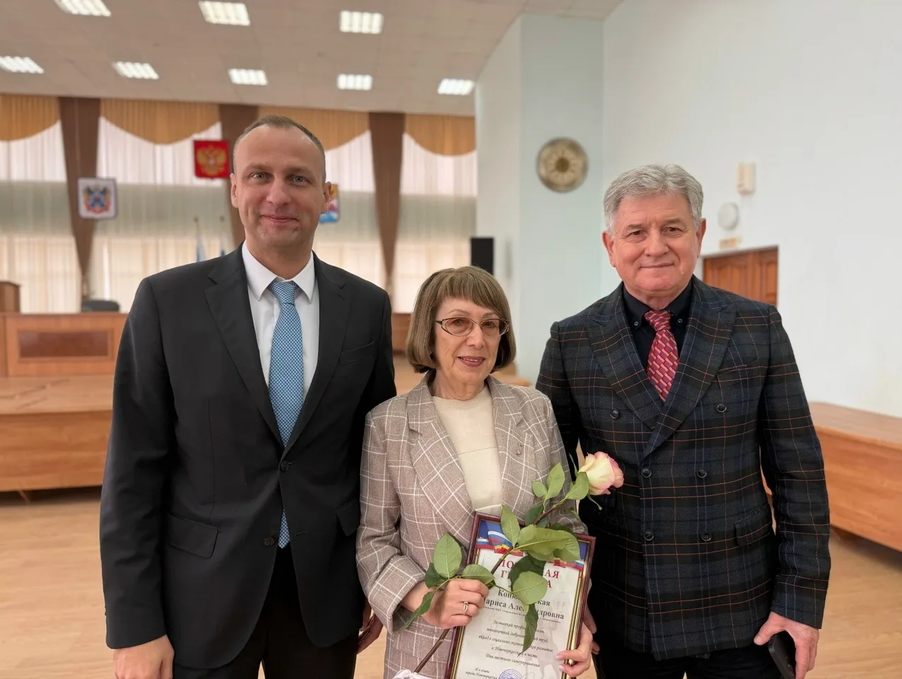 Более 30 сотрудников, чей стаж работы в органах местного самоуправления превышает 25 лет, были награждены почётными грамотами за добросовестный труд, ответственное отношение к делу и верность профессии.