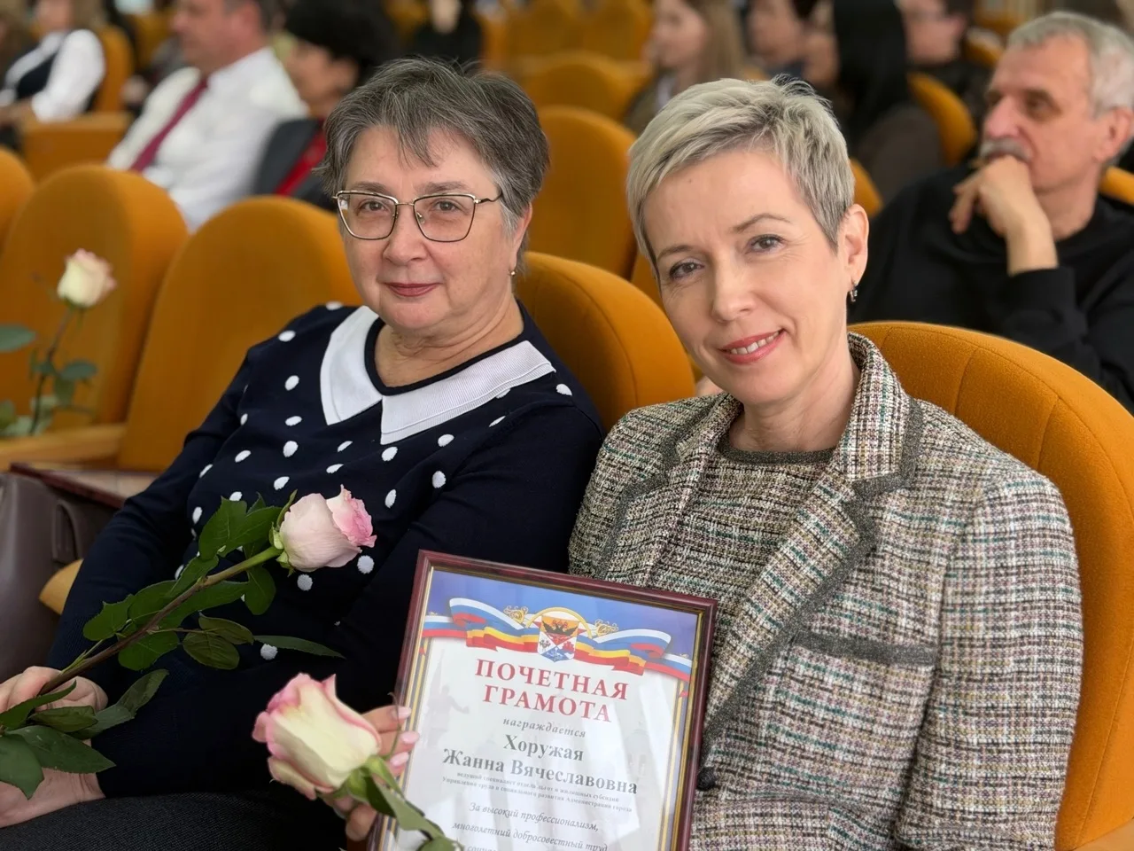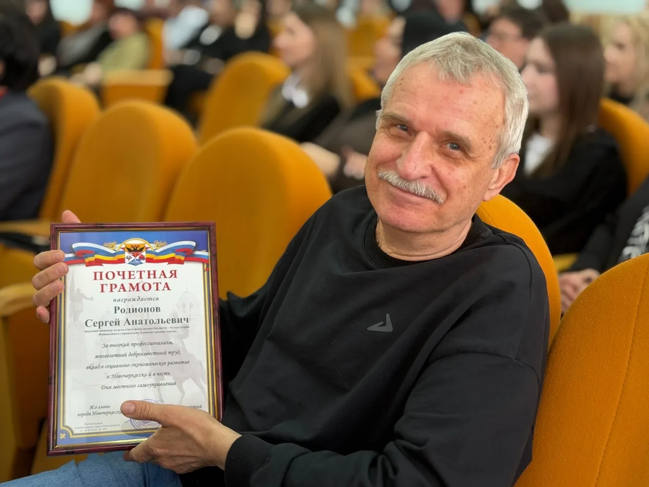 «Сегодня мы чествуем самых опытных сотрудников, золотой фонд администрации города Новочеркасска. Дорогие друзья, всех слов благодарности в ваш адрес я могу говорить очень много, и это будет искренне: благодаря вам очень много, казалось бы, незаметной работы делается, без которой город бы не смог функционировать и жить. Передаю вам слова поздравления и благодарности от главы нашего города Павла Александровича Исакова, желаю здоровья вам и всем вашим семьям и мирного неба над головой! С праздником!», — сказал Константин Хмельницкий.